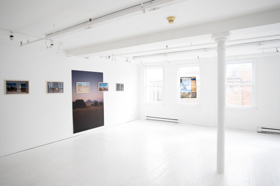 Dans la ligné d’un travail axé sur le soin, je développe également une série de cyanotype en écho aux territoires visités. Le cyanotype, procédé photosensible, s’intègre dans une réflexion autour de la lumière et son importance comme marqueur du territoire. En plus de son lien avec la lumière, le cyanotype réagit aux tanins des plantes en changeant de couleur. Ce procédé nommé toning permet ainsi d’intégrer le territoire même dans la fabrication physique de l’image. Une fois les images crées, les cyanotypes sont assemblés à la manière d’une courtepointe, créant un paysage fictif, recomposé. Là encore, la courtepointe s’ancre dans une recherche sur le réconfort et le soin en contexte de territoires étrangers et extrêmes.